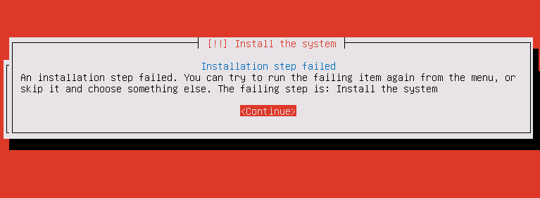 1An installation step failed. You can try to run the failing item again from the menu, or skip it and choose something else. The failing step is: Install the system